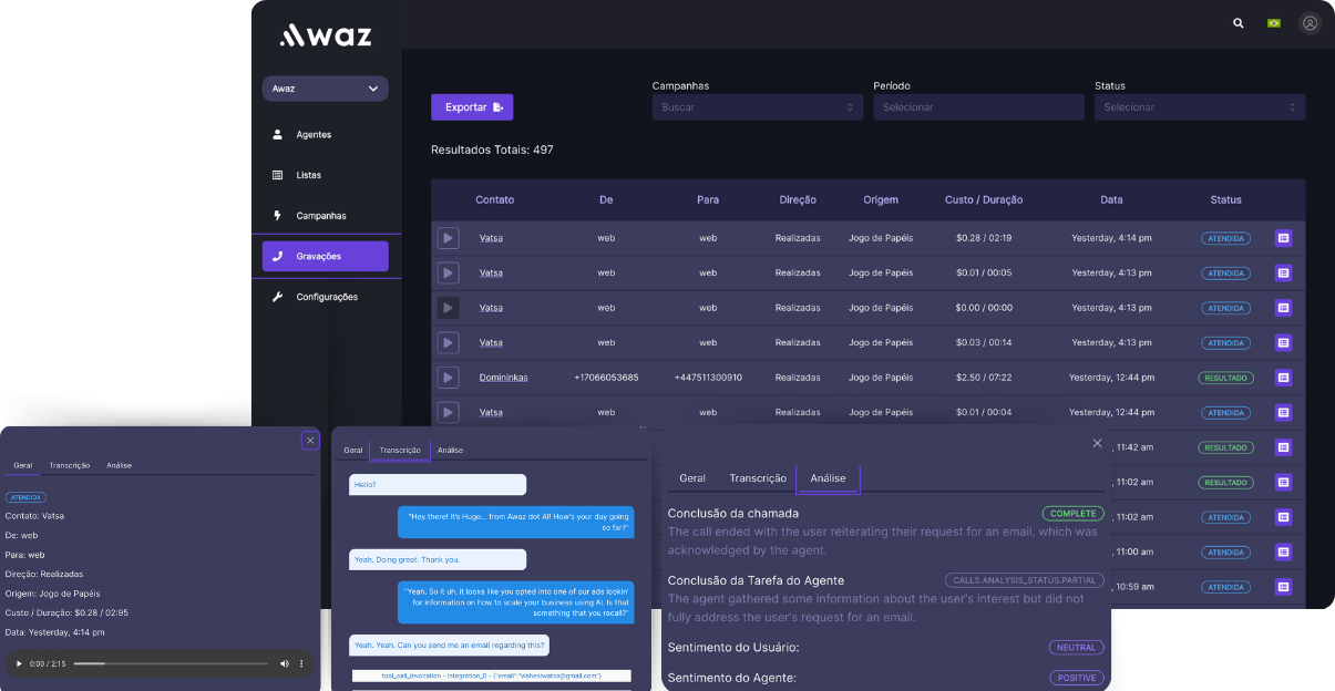 Conecte facilmente o Awaz a aplicativos como Mailchimp, GoHighLevel, formulários do Google, Calendly, Wix, Webflow e muitos outros usando Zapier, APIs e webhooks.